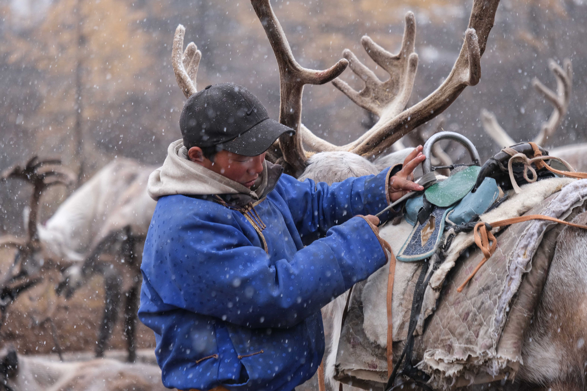 Trong các gia đình, những thiếu niên như Sugara - con trai út của Makhsar - đều thành thạo kỹ năng cưỡi tuần lộc vượt qua các cung đường trơn trượt, quanh co để dẫn đàn đi khắp những khu rừng lá kim rậm rạp tìm rêu, địa y - nguồn thức ăn ngày càng hiếm hoi do biến đổi khí hậu.