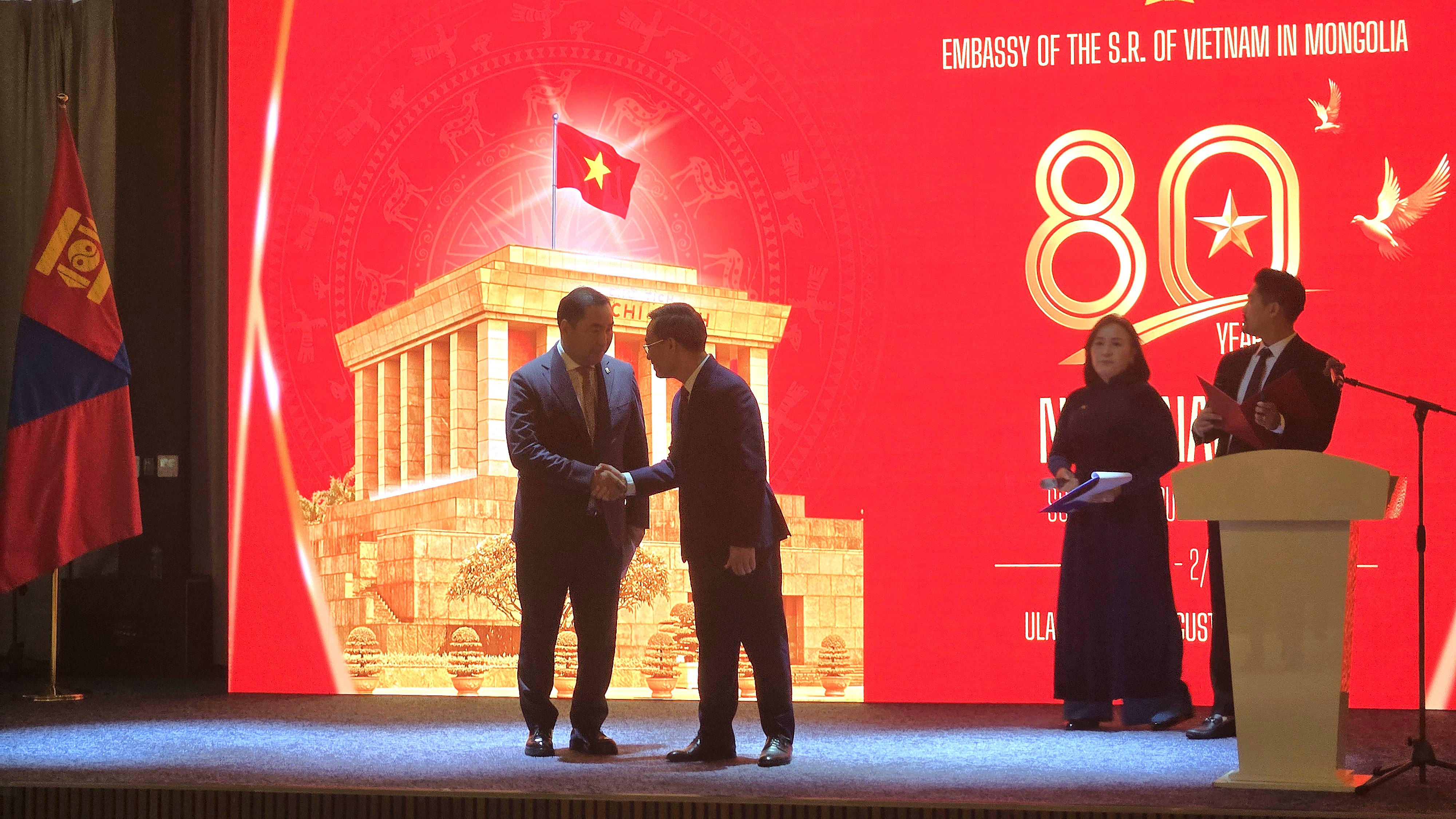 Phó Chủ tịch Quốc hội B. Purevdorj cho biết, 80 năm là một chặng đường vẻ vang mà nhân dân Việt Nam, dưới sự lãnh đạo sáng suốt của Đảng và Nhà nước, đã giữ vững độc lập, xây dựng và phát triển đất nước, khẳng định vị thế trên trường quốc tế. Nhân dân Mông Cổ tự hào được sát cánh cùng Việt Nam trong những năm tháng khó khăn, luôn dành sự ủng hộ chí tình cả về vật chất và tinh thần. Những khoảnh khắc ấy mãi mãi khắc sâu trong lịch sử chung của hai dân tộc. Tình hữu nghị truyền thống Mông Cổ - Việt Nam được các thế hệ lãnh đạo và nhân dân hai nước vun đắp, đã trở thành di sản quý báu. Những năm gần đây, quan hệ song phương không ngừng được mở rộng, đặc biệt việc hai nước nâng cấp quan hệ lên Đối tác toàn diện năm 2024 là một cột mốc vàng son trong lịch sử quan hệ Mông Cổ - Việt Nam, mở ra giai đoạn hợp tác mới, bền chặt và hiệu quả.